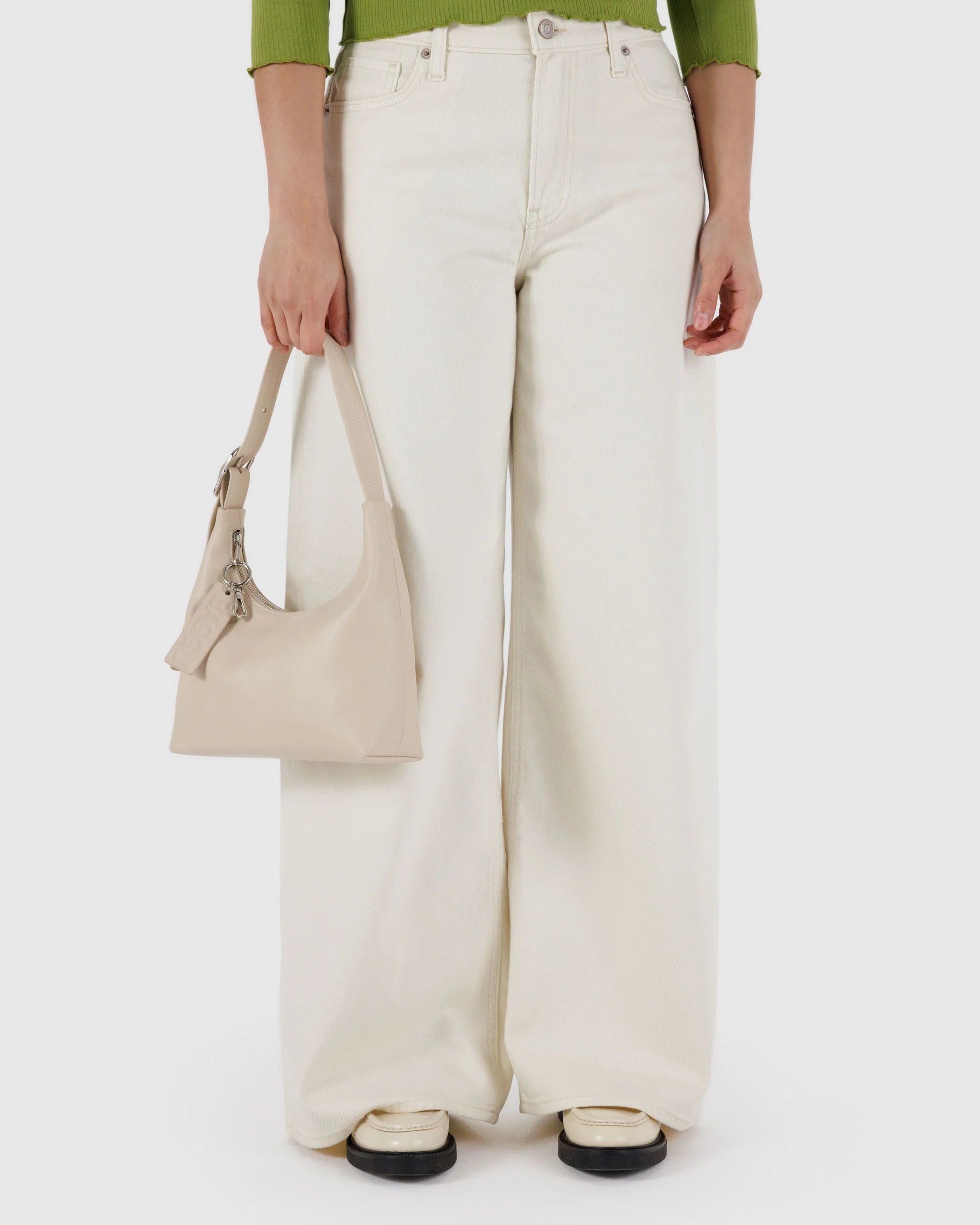 A smaller version of our Recycled Leather Shoulder Bag. Elevated on the outside with a smooth, pebbled finish and metal hardware. Designed to fit the essentials, with organizational features like a zip pocket and key leash.
