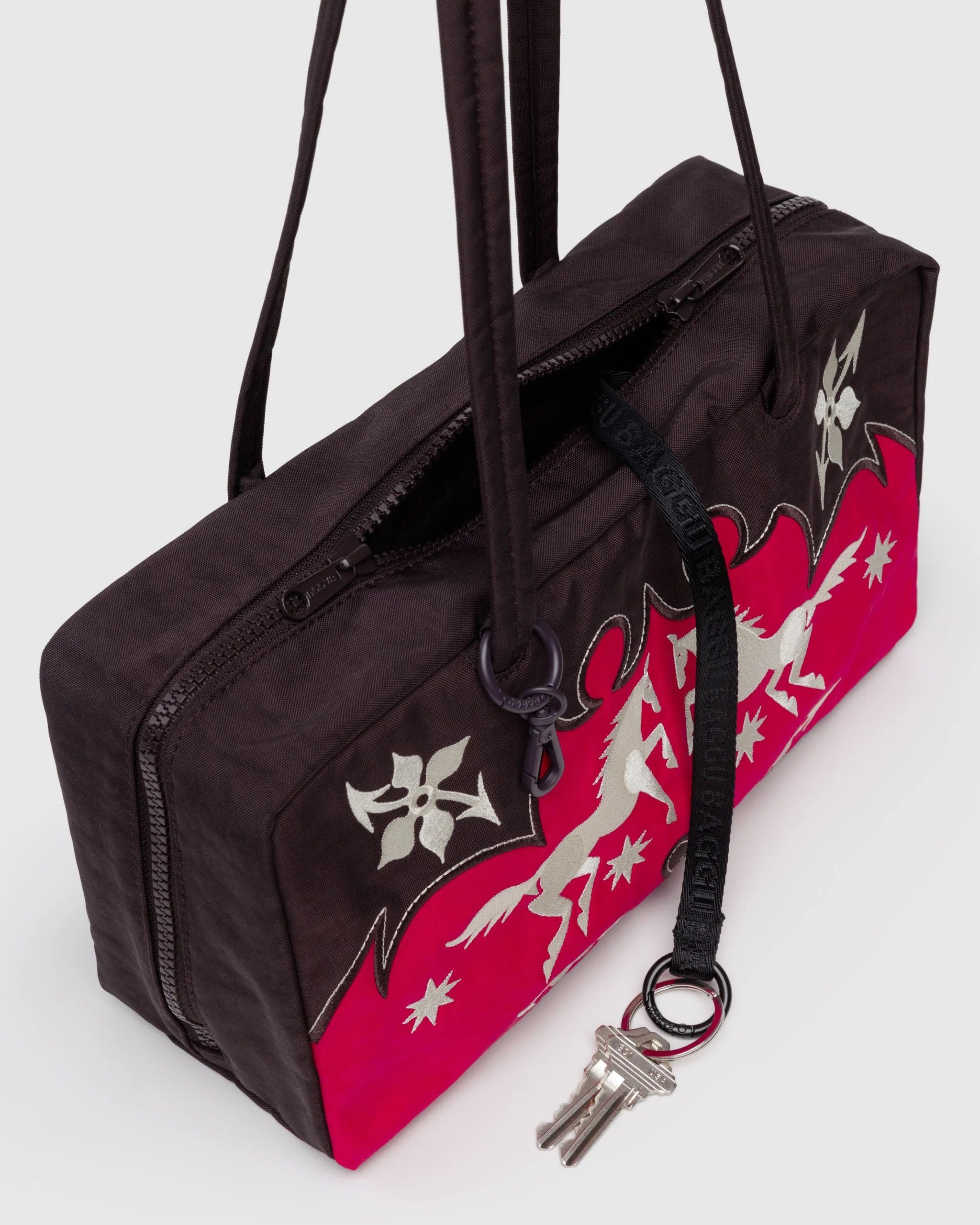 A bowler bag designed to be accessorized. Four charm loops and a clip ring let you accessorize from every angle. A wide interior includes a convenient zip pocket and room to carry more than the essentials.