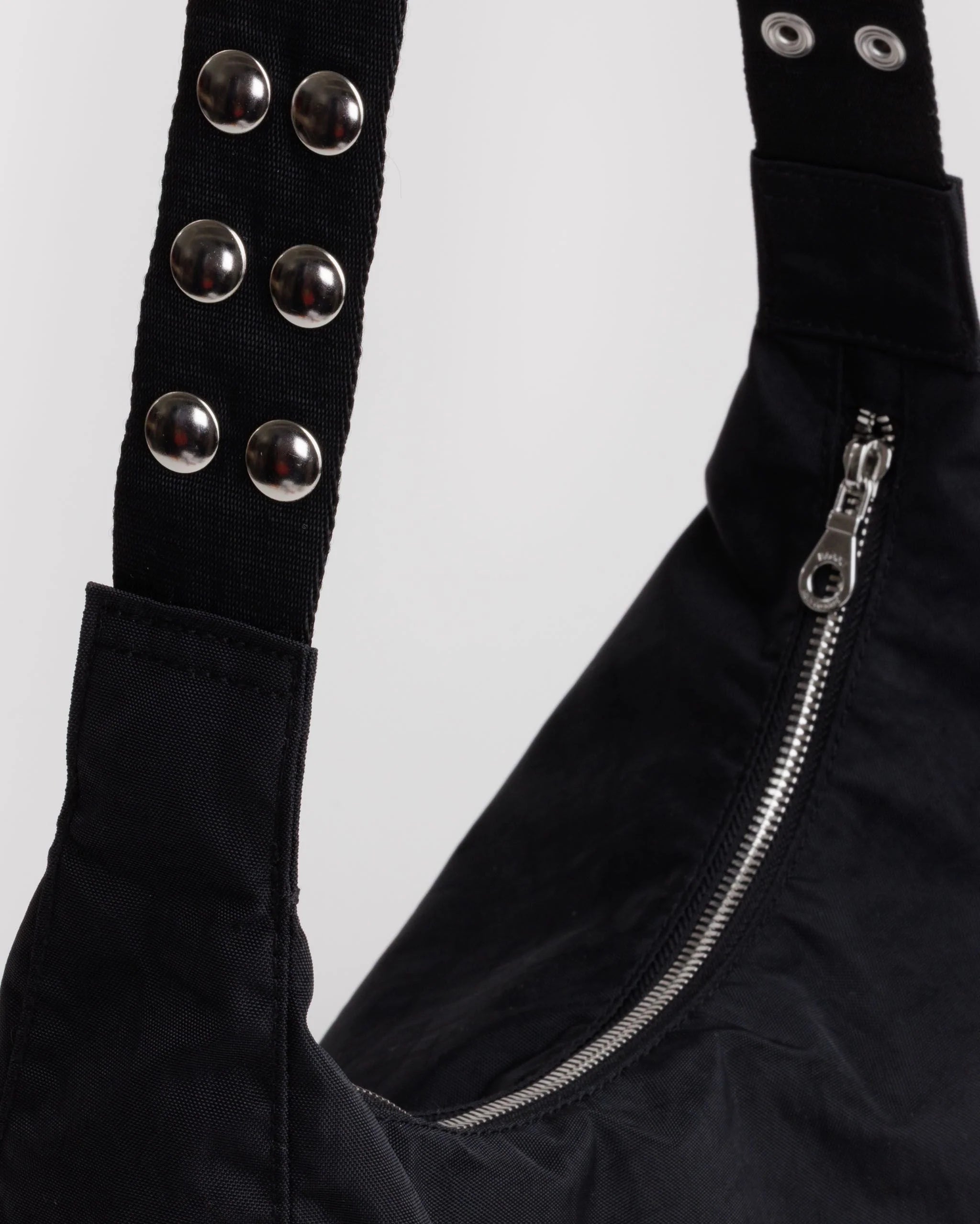 SKU: popper-strap-medium-nylon-crescent-bag-black