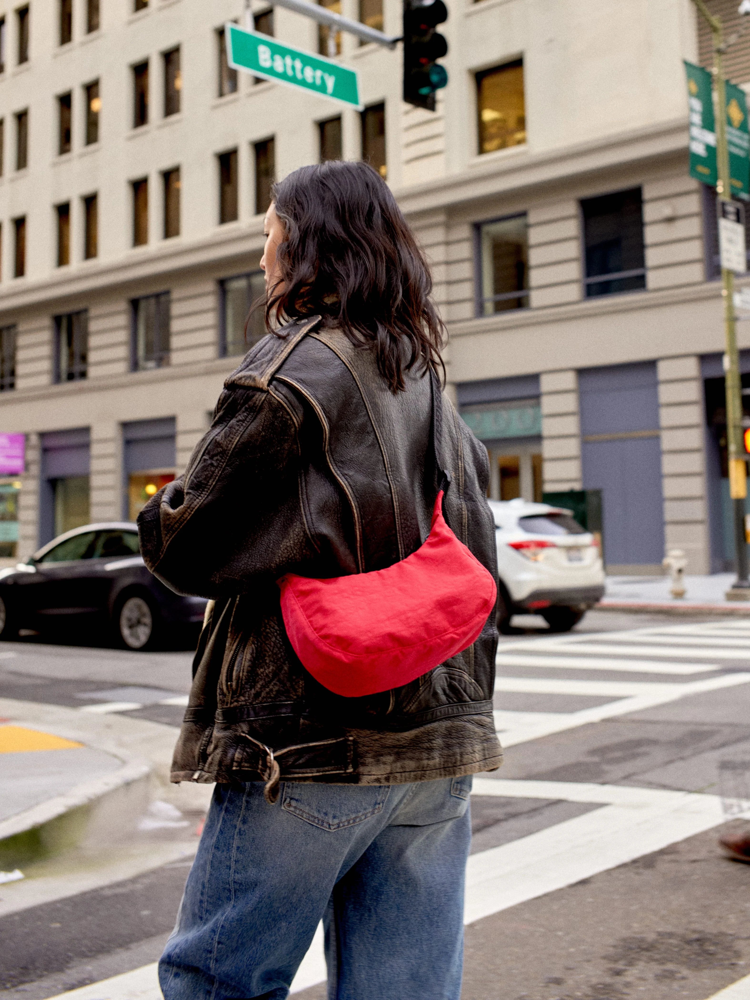 Small Nylon Crescent Bag - Candy Apple